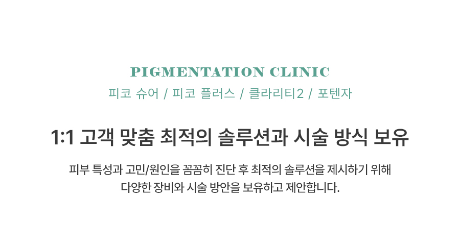피코슈어는 1조의 1초(10^12)분의 1인 피코세컨드의 짧은 시간 동안 빠르게 매우 높은 에너지를 조사하여 빠르고 정확하게 멜라닌 색소만을 타겟팅 합니다.