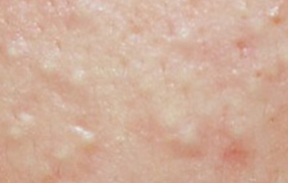 여드름 환자가 매우 싫어하는 형태로 하나 하나의 여드름이 화농하여 피부 깊숙이 농포를 만들고 있는 단계입니다.