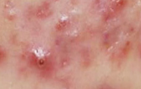 면포, 붉은 구진, 고름이 든 농포가 많이 형성되어 여러 개의 농포가 뒤엉켜 중증의 상태가 되기도 합니다.