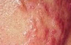 지속적으로 화농되는 모낭 염증과 모낭 주위염으로 치유 후에도 집게발 모양의 켈로이드를 형성합니다.