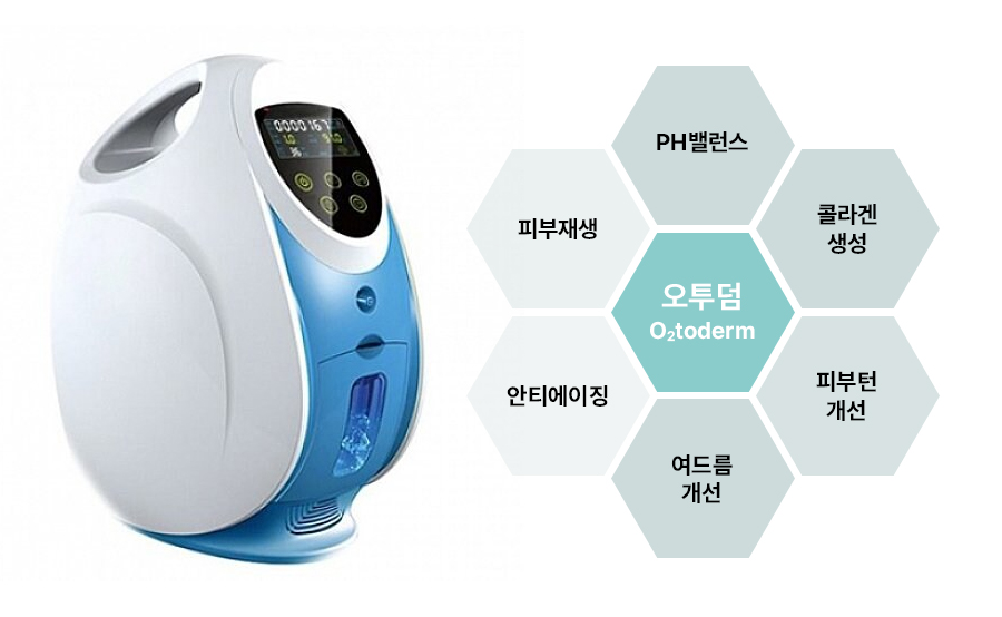 오투덤은 특수한 흡착 필터로 대기중의 공기를 흡입하여, 질소는 걸러내고 산소만 배출하는 압력전환흡착 기술을 이용하여 순수한 산소를 만듭니다. 오투덤 테라피의 피부속까지 뛰어난 미백ㆍ보습ㆍ재생 효과를 기대해 보세요